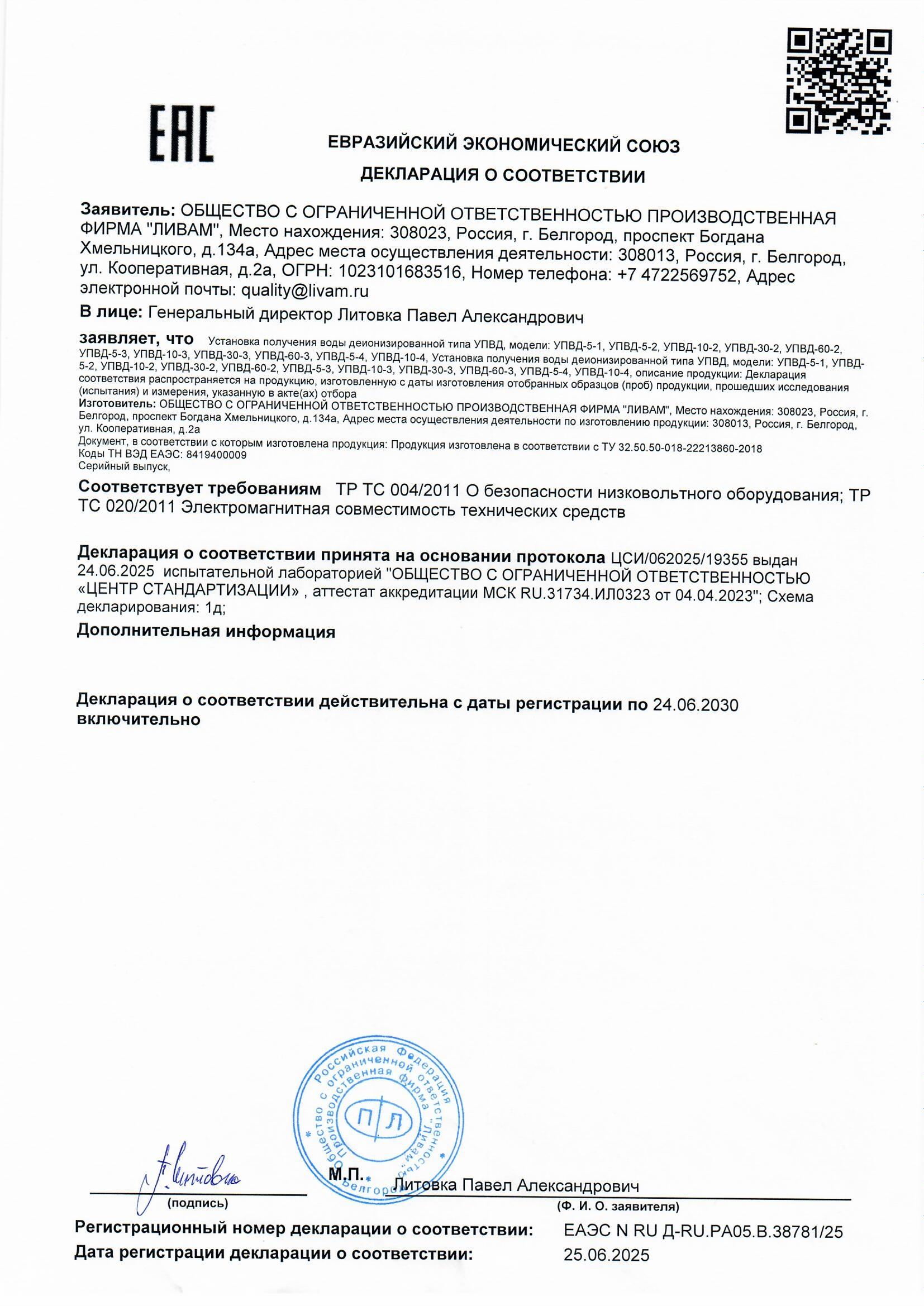 Организация: itemprop="name">«ЛИВАМ» – российский производитель медицинского и лабораторного оборудования для водоочистки Телефон: 8-800-301-08-61